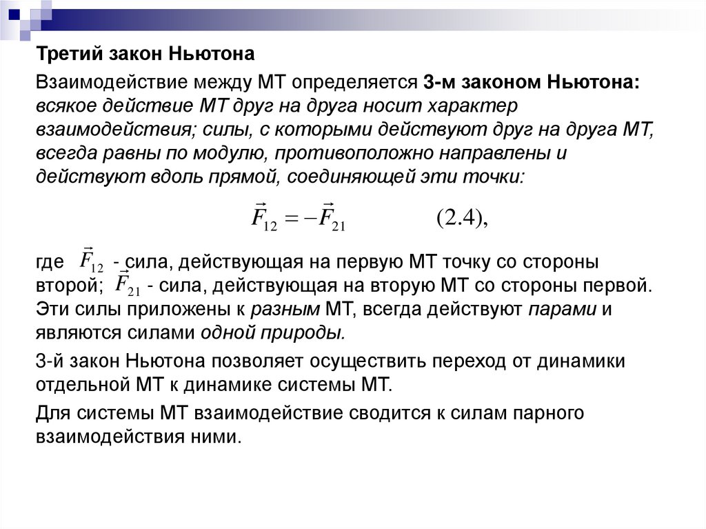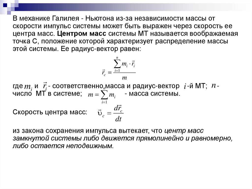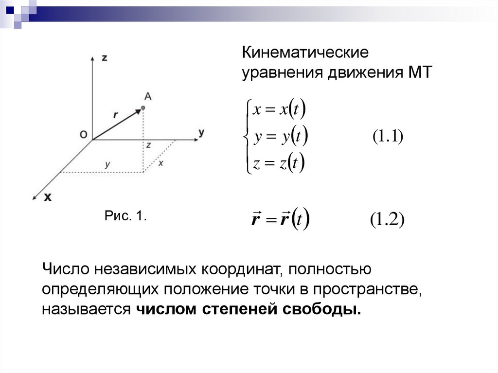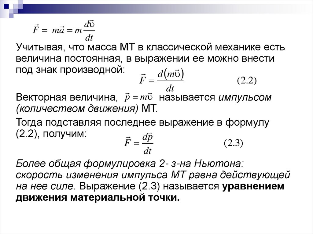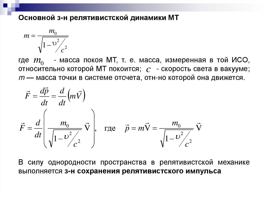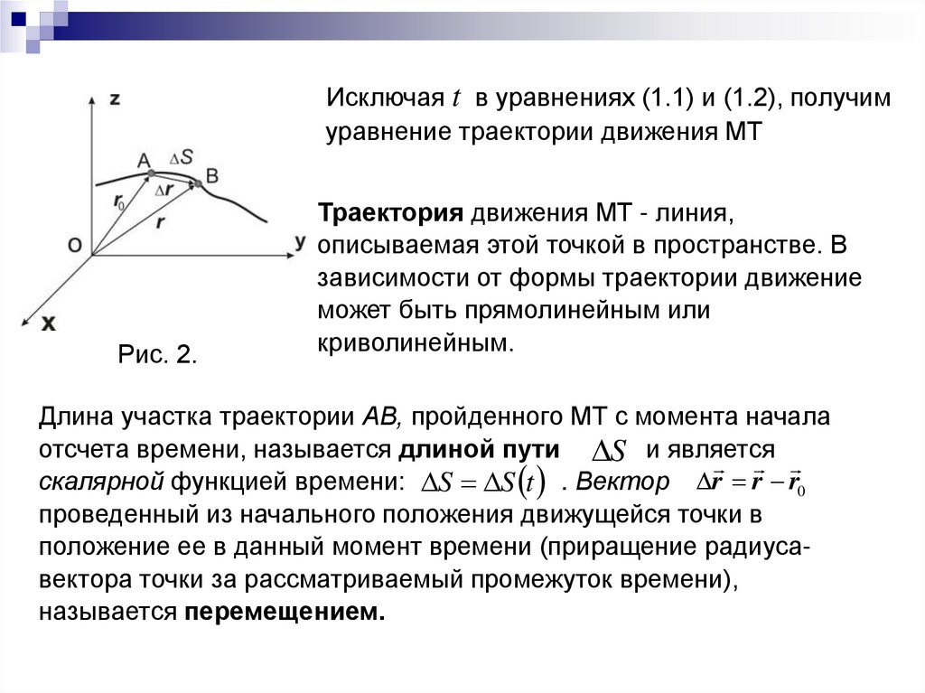 Материальная точка (МТ) - тело, обладающеемассой, размерами которого в данной задаче можно