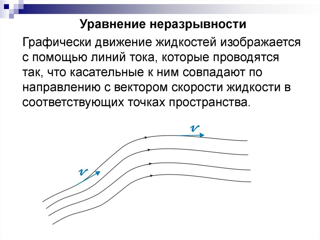 Уравнение неразрывностиГрафически движение жидкостей изображается
