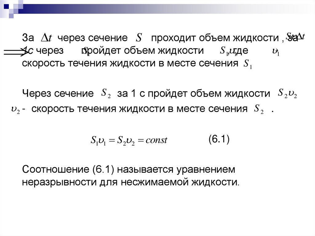 Через сечение S 2 за 1 с пройдет объем жидкости S 2 2