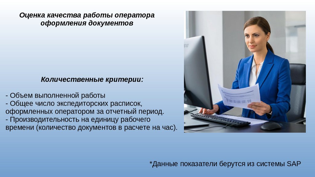 Оценка качества работы оператораоформления документов