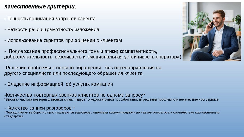 доброжелательность, вежливость и эмоциональная устойчивость оператора)