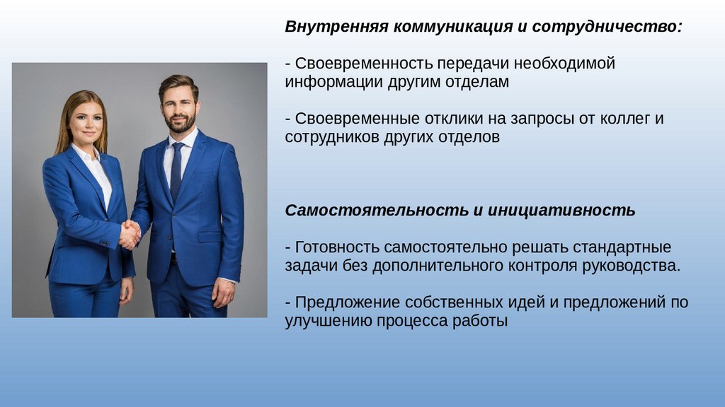 Внутренняя коммуникация и сотрудничество:- Своевременность передачи необходимой