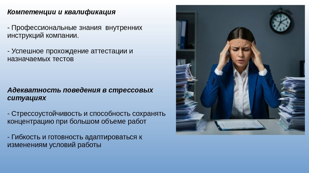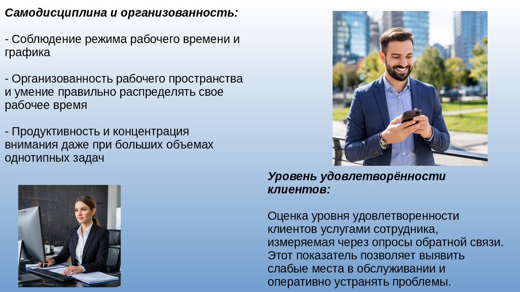 - Способность сотрудника эффективно общаться с клиентами, быстро ориентироваться в ситуации