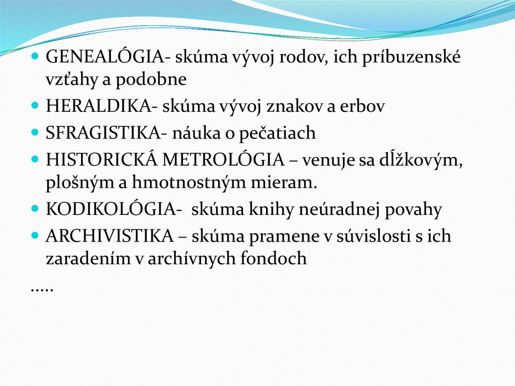 GENEALÓGIA- skúma vývoj rodov, ich príbuzenskévzťahy a podobne