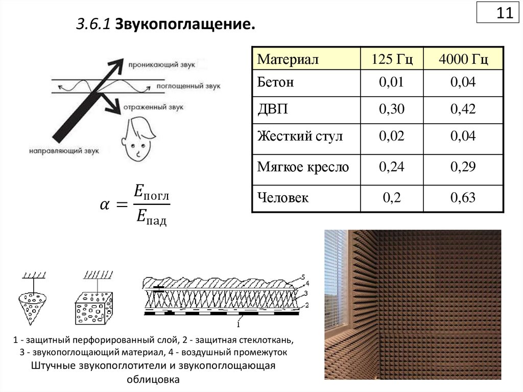 • Звукопоглощение (акустическая обработка помещений).
