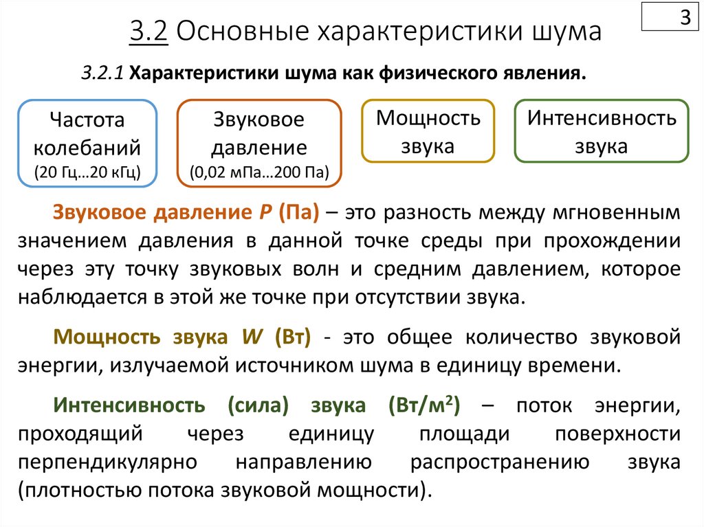 3.2.1 Характеристики шума как физического явления.