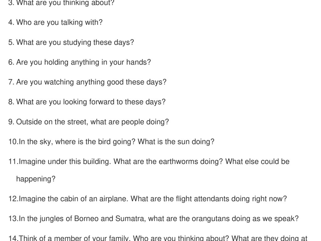 14.Think of a member of your family. Who are you thinking about? What are they doing at