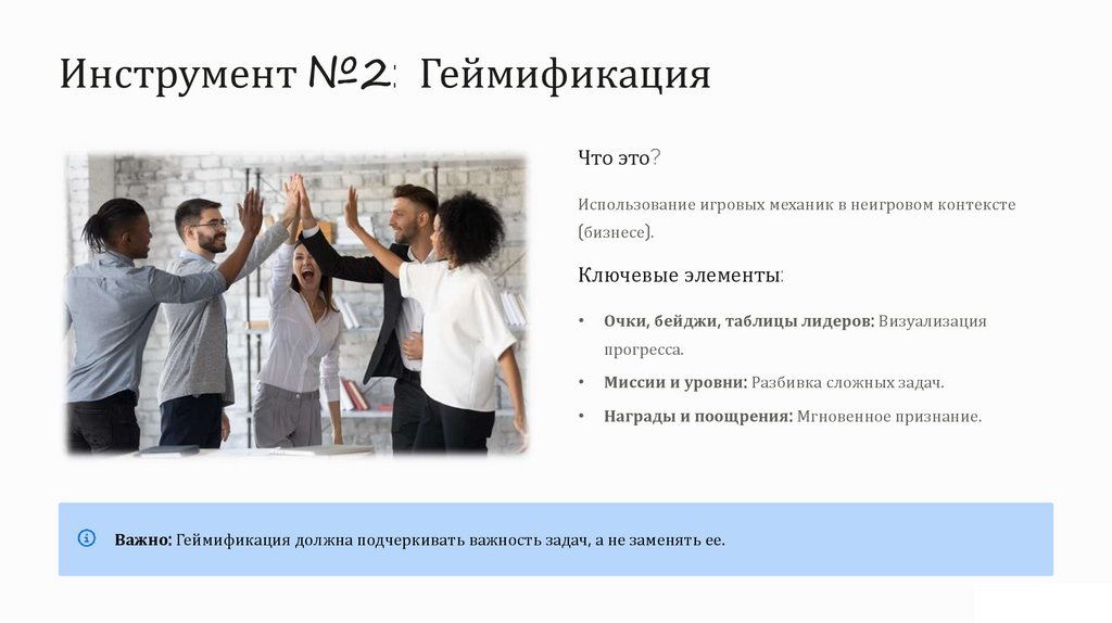 Важно: Геймификация должна подчеркивать важность задач, а не заменять ее.