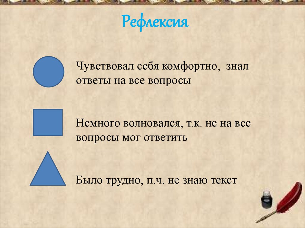 РефлексияЧувствовал себя комфортно, знал