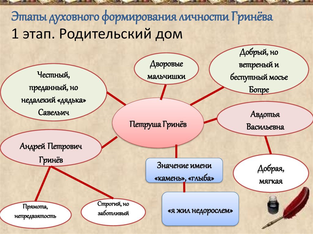 Этапы духовного формирования личности Гринёва1 этап. Родительский дом