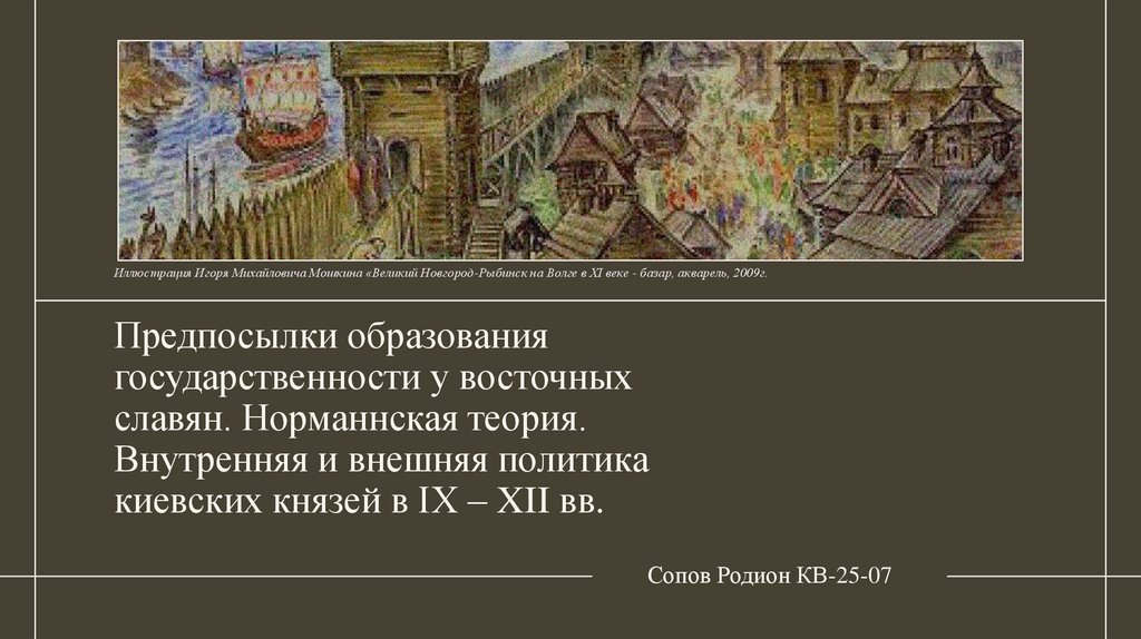 Иллюстрация Игоря Михайловича Мошкина «Великий Новгород-Рыбинск на Волге в XI веке - базар, акварель, 2009г.Предпосылки образования