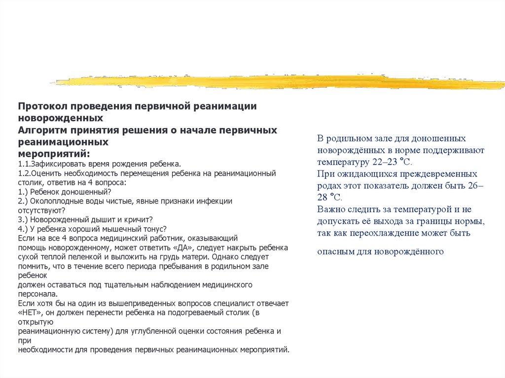 Протокол проведения первичной реанимацииноворожденных
