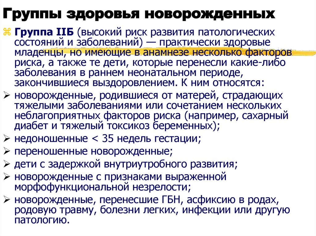 Группы здоровья новорожденныхГруппа IIБ (высокий риск развития патологических