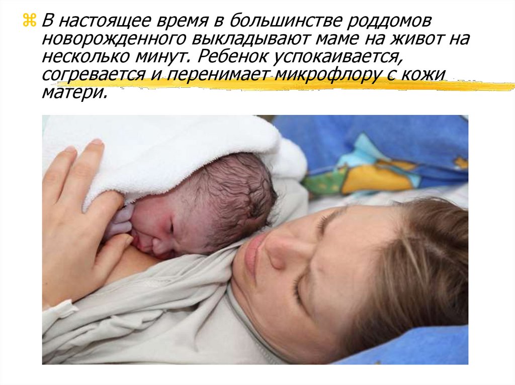 сухой теплой пеленкой и выложить на грудь матери. Однако следует