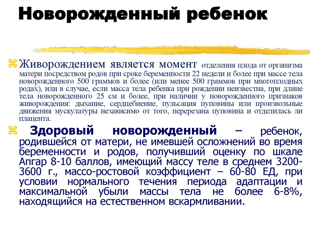 матери посредством родов при сроке беременности 22 недели и более при массе тела