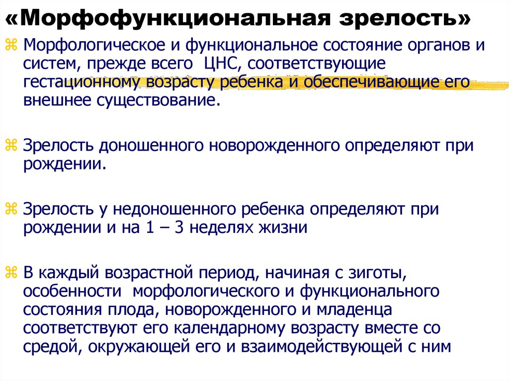 морфофункциональной незрелости;