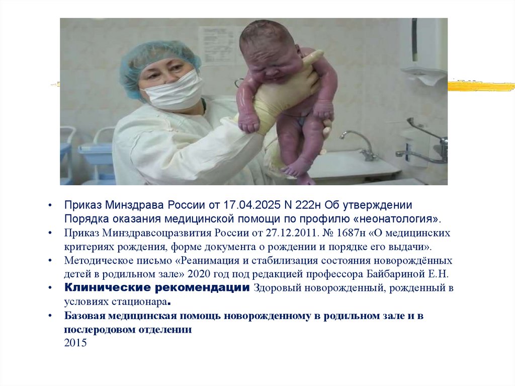Базовая медицинская помощь новорожденному в родильном зале и в