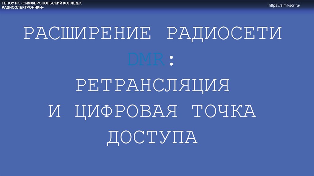 РАСШИРЕНИЕ РАДИОСЕТИ DMR: