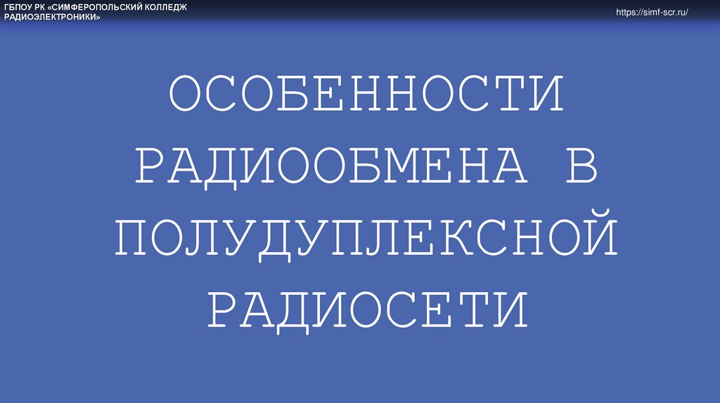 ОСОБЕННОСТИ РАДИООБМЕНА В ПОЛУДУПЛЕКСНОЙ