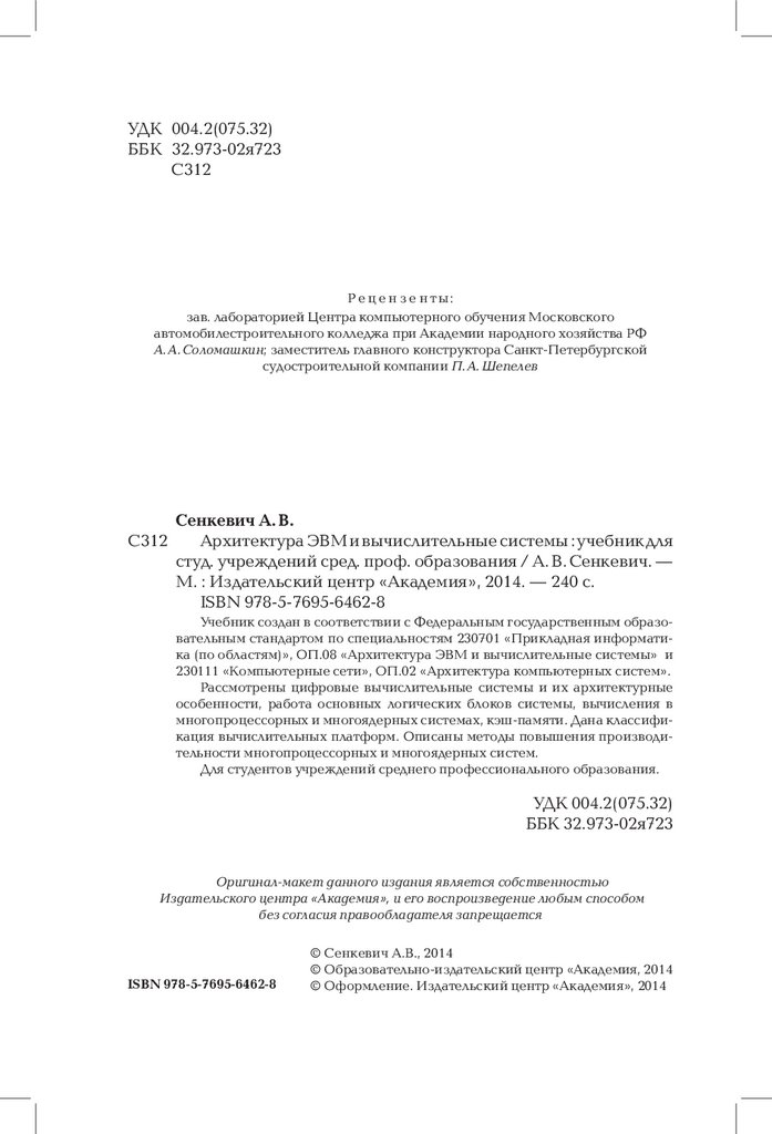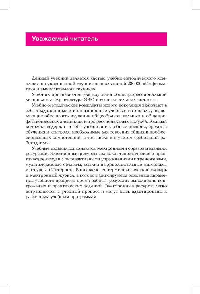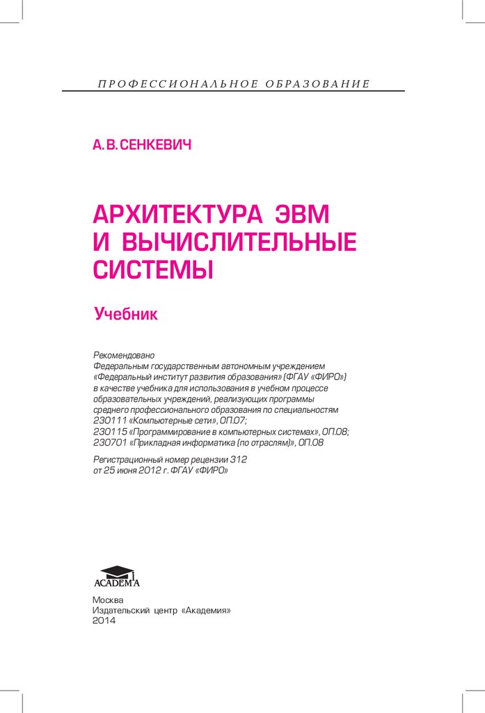 Учебник создан в соответствии с Федеральным государственным образовательным стандартом по специальностям 230701 «Прикладная информатика (по областям)», ОП.08 «Архитектура ЭВМ и вычислительные системы» и