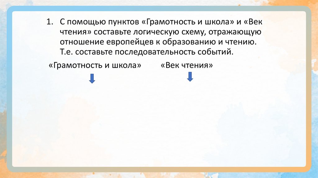 1. С помощью пунктов «Грамотность и школа» и «Векчтения» составьте логическую схему, отражающую