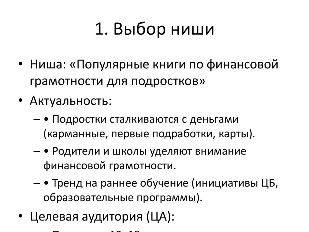 1. Выбор ниши• Ниша: «Популярные книги по финансовой