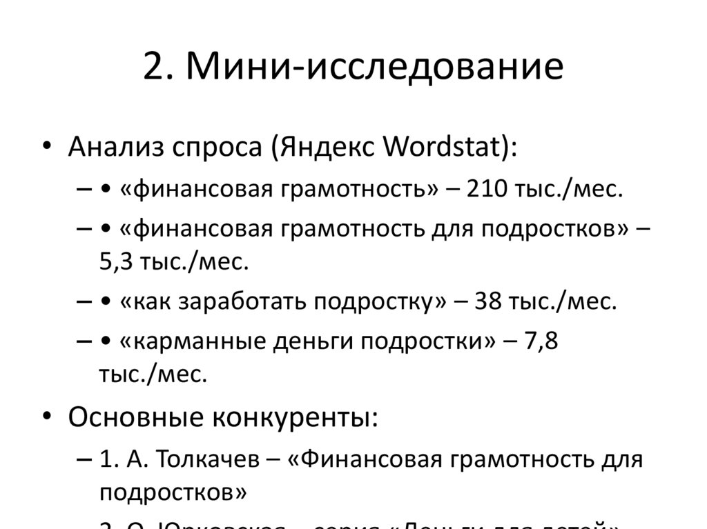 2. Мини-исследование• Анализ спроса (Яндекс Wordstat):