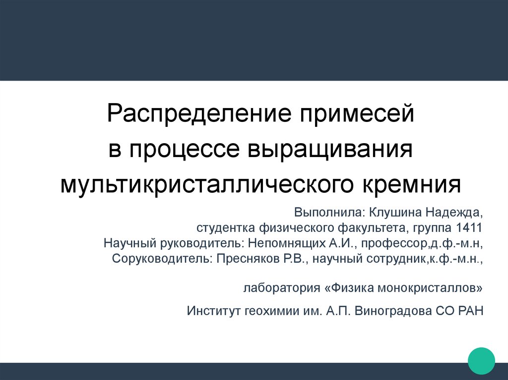 Научный руководитель: Непомнящих А.И., профессор,д.ф.-м.н,