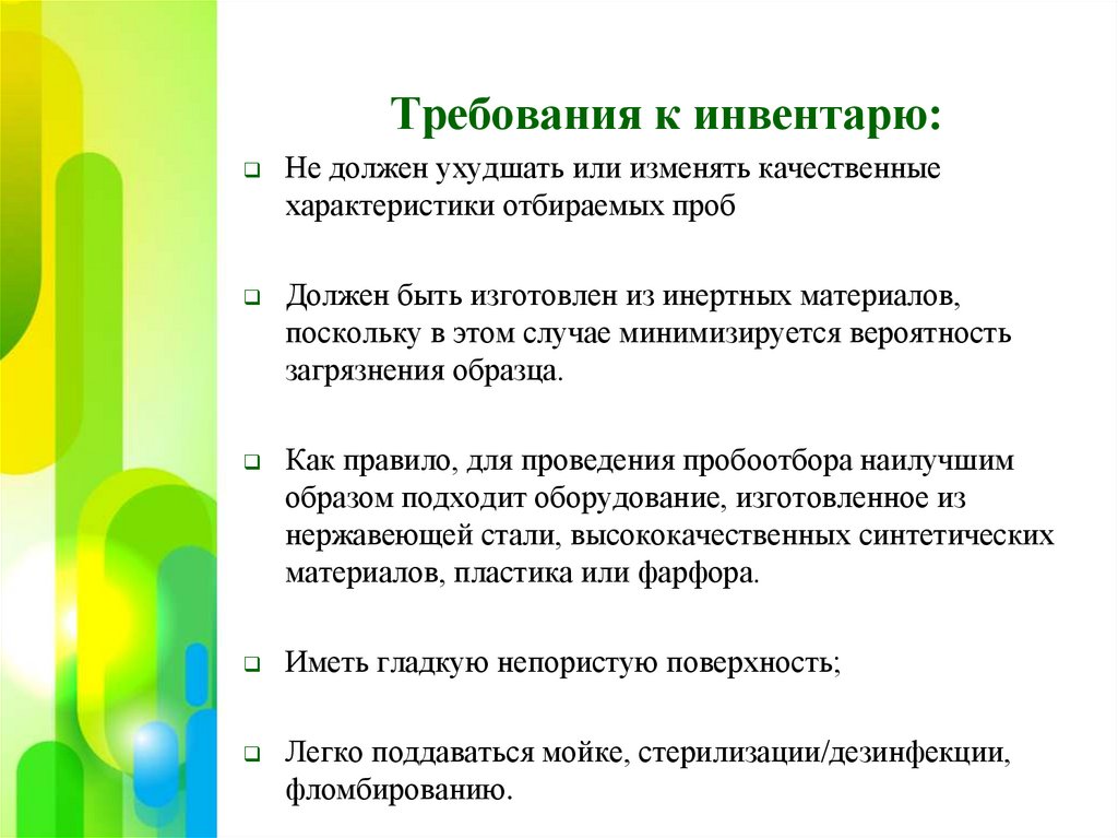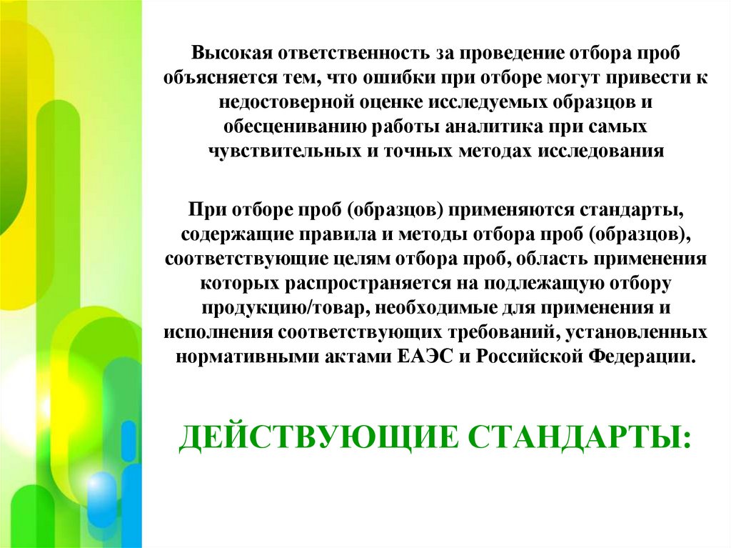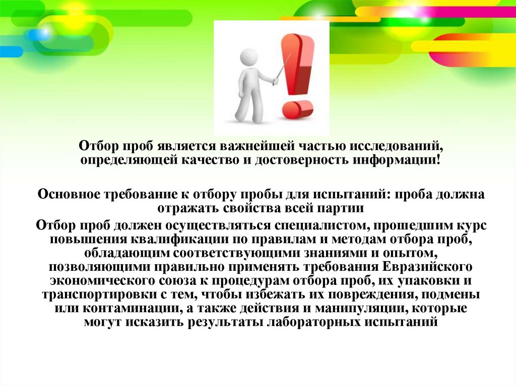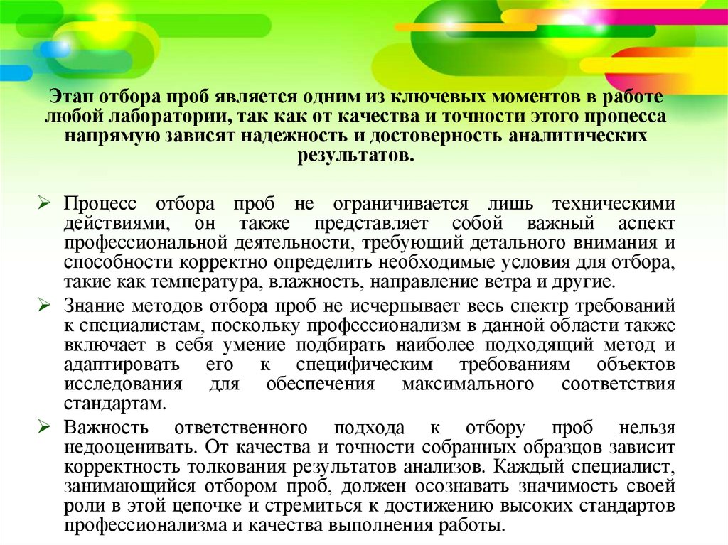 Знание методов отбора проб не исчерпывает весь спектр требований