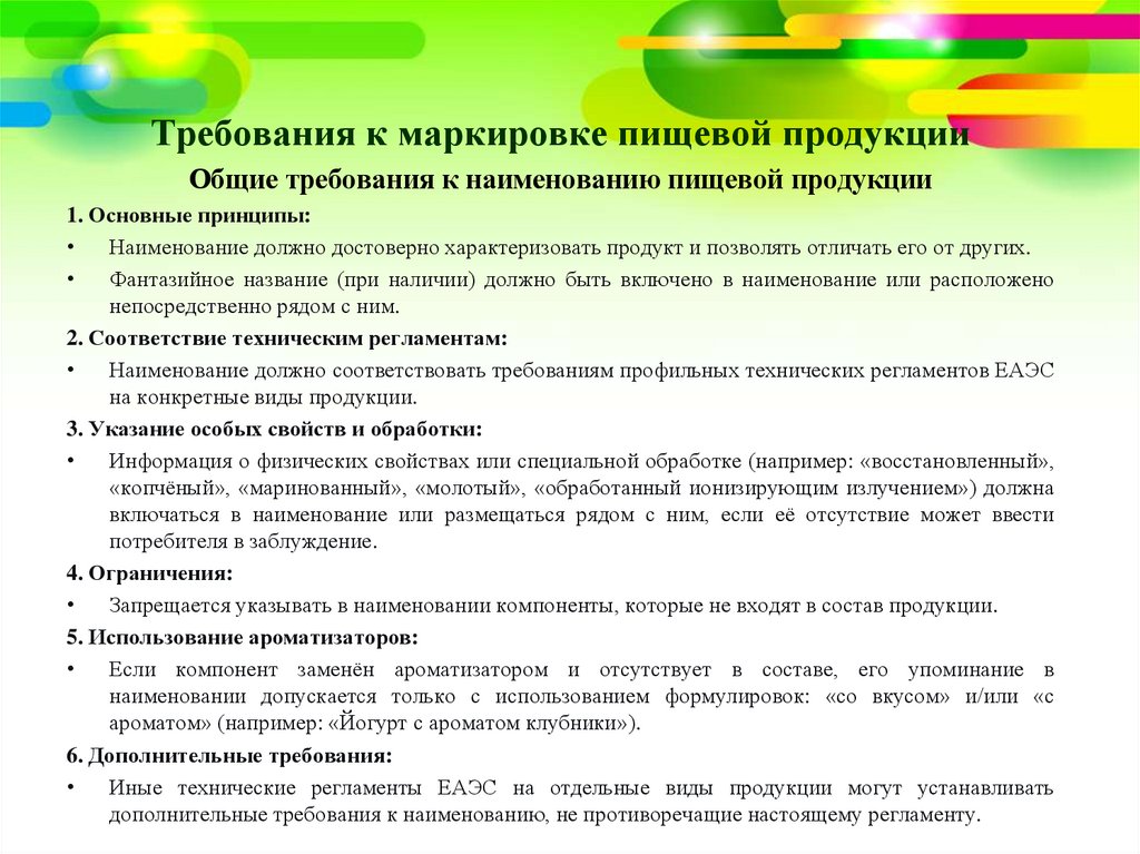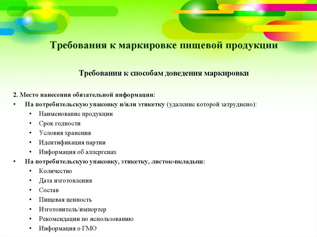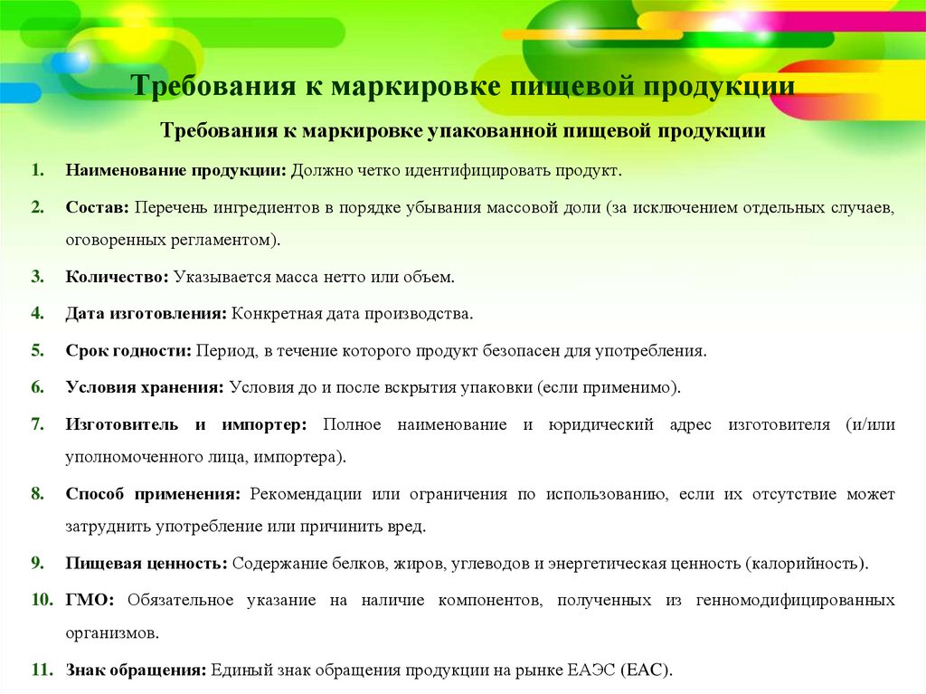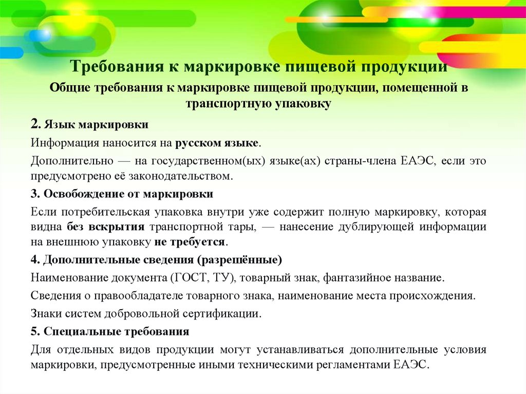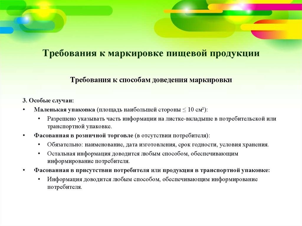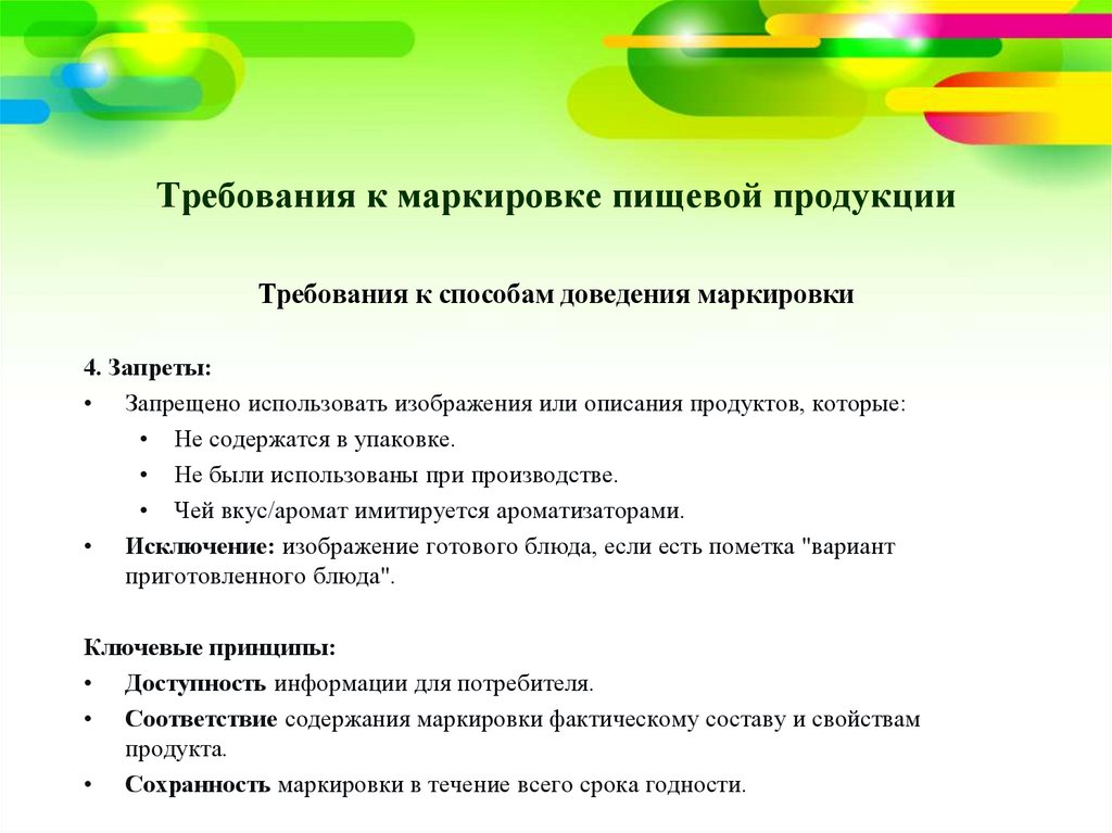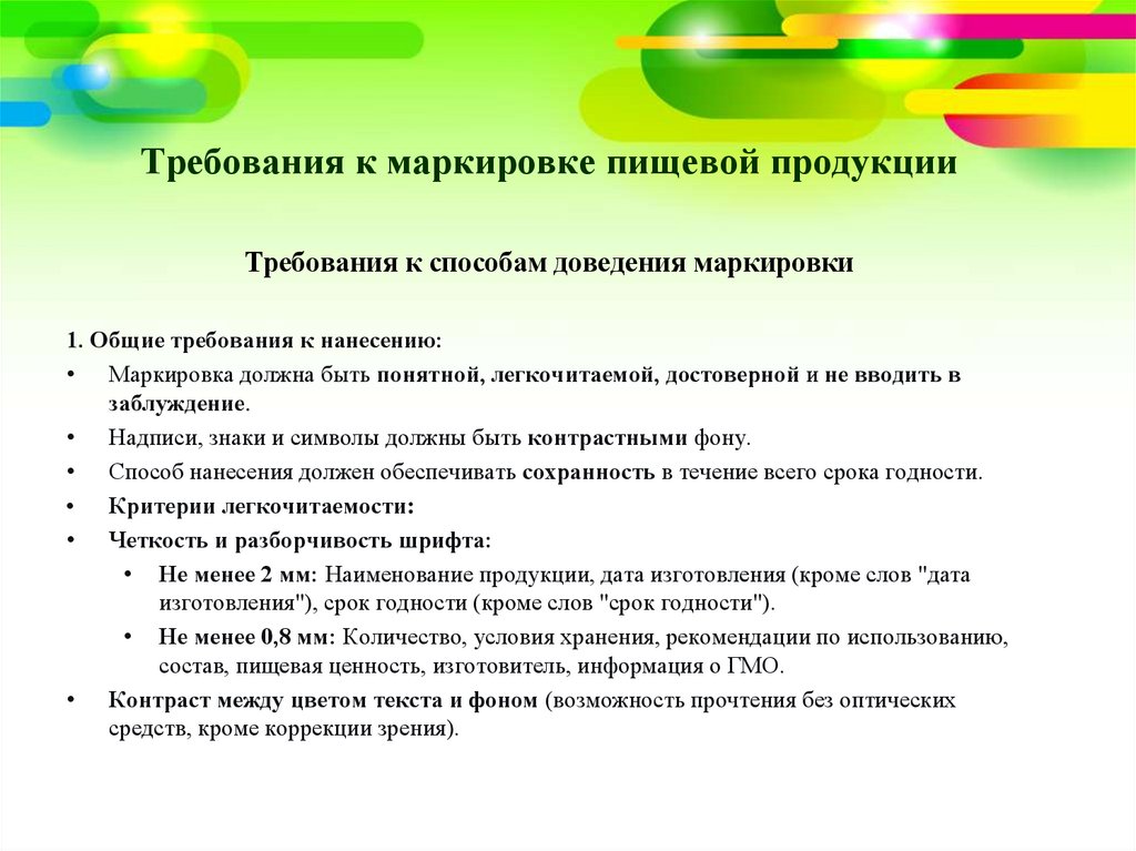 Требования к маркировке пищевой продукцииТребования к способам доведения маркировки