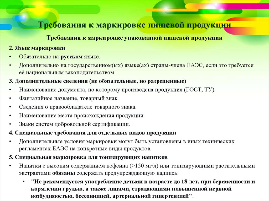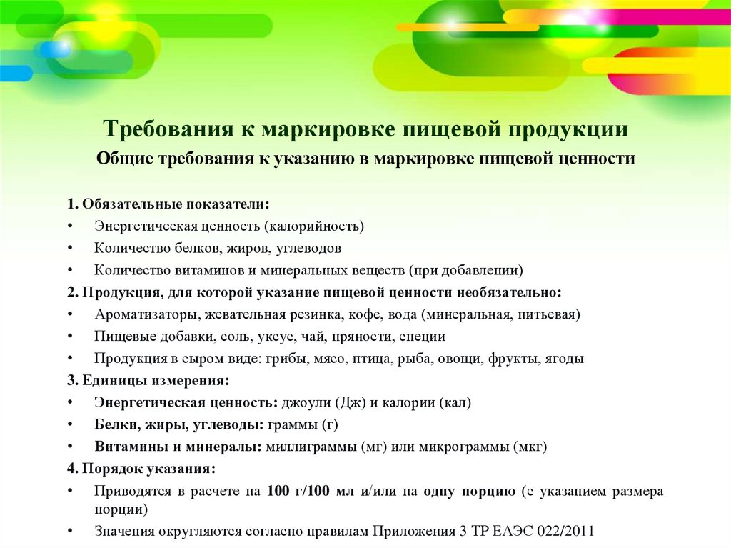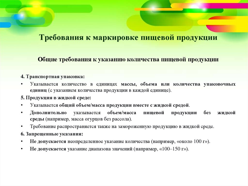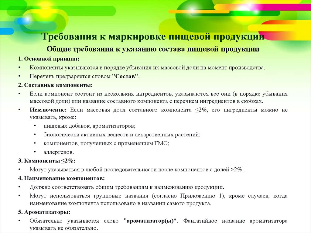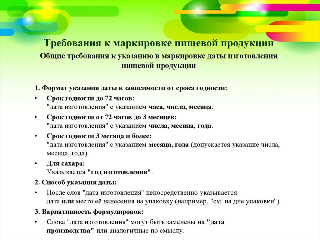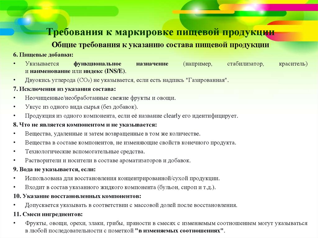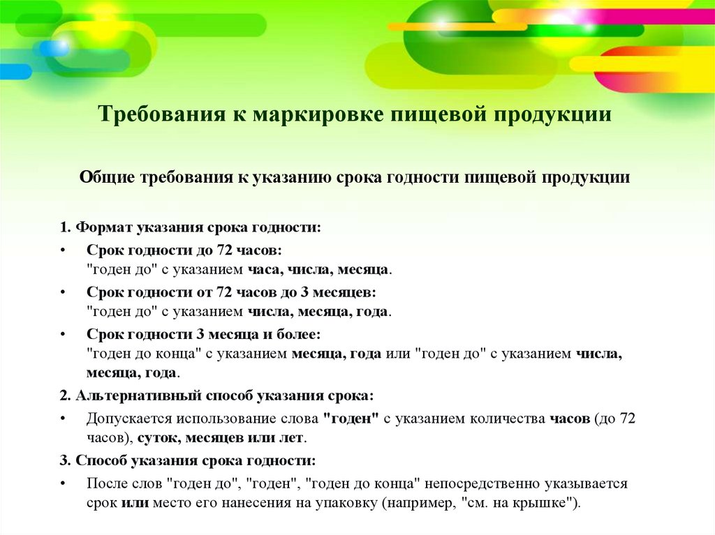 Требования к маркировке пищевой продукцииТребования к способам доведения маркировки