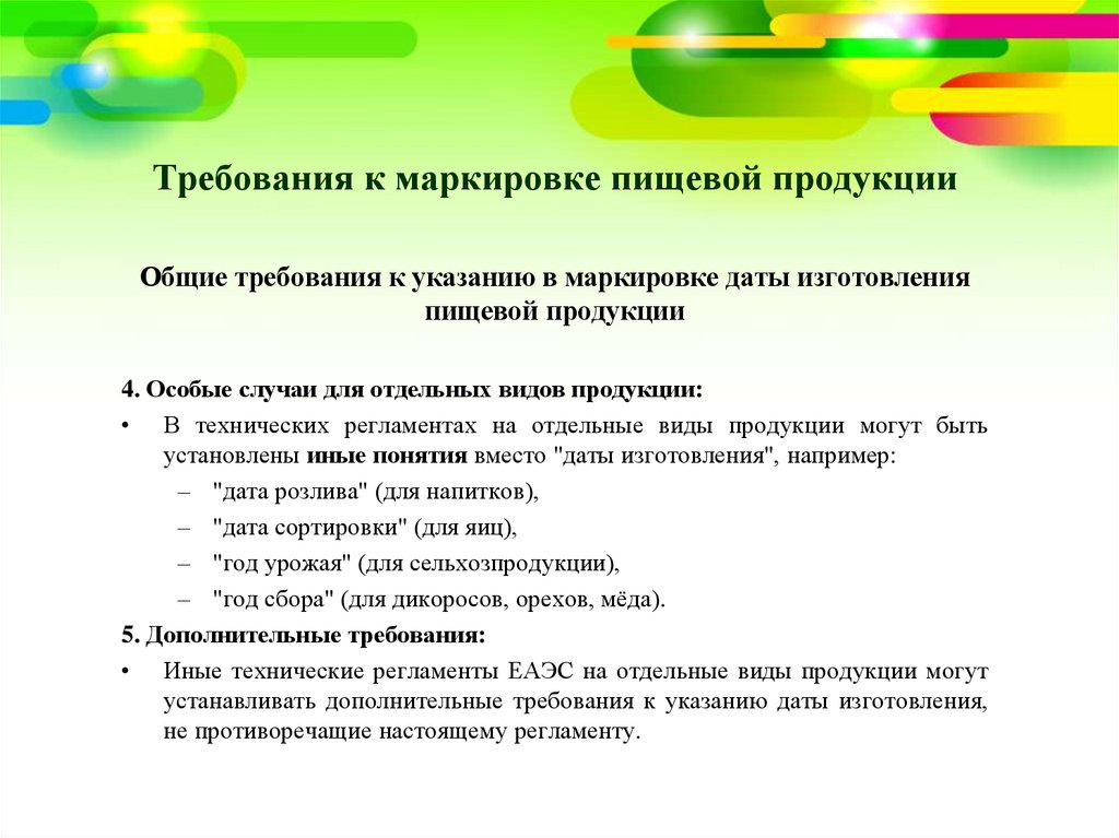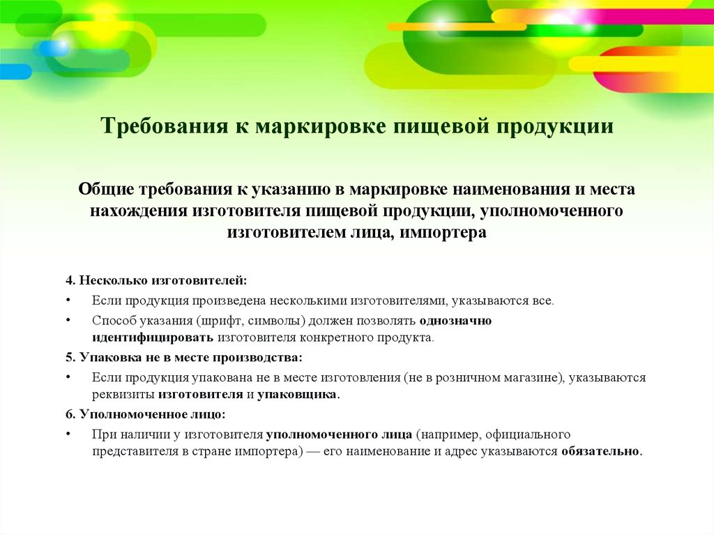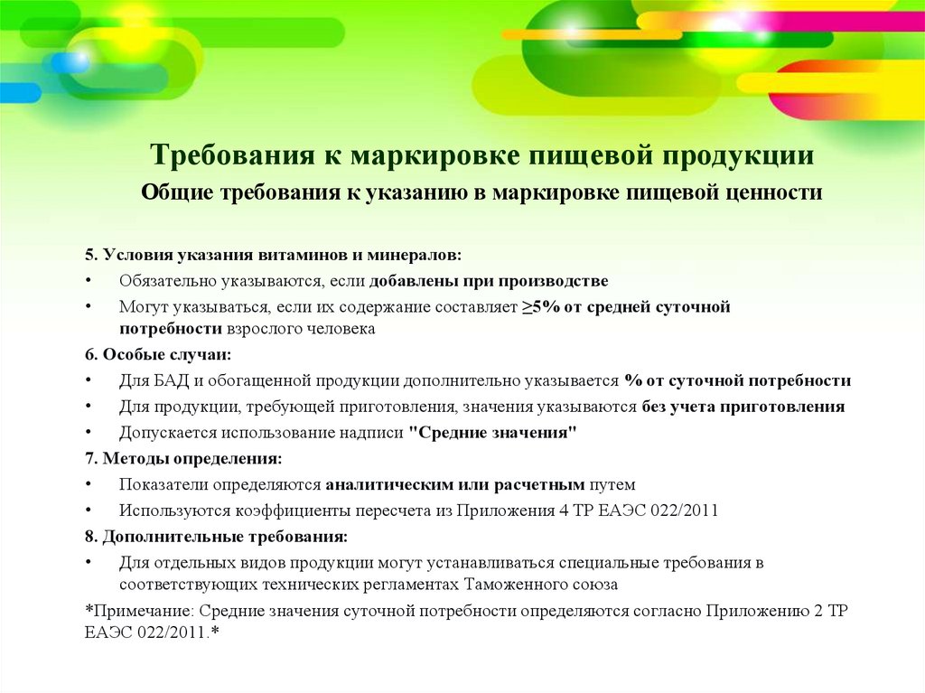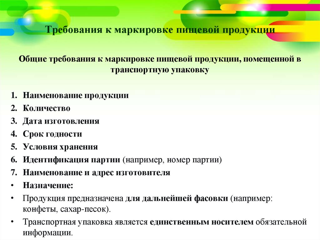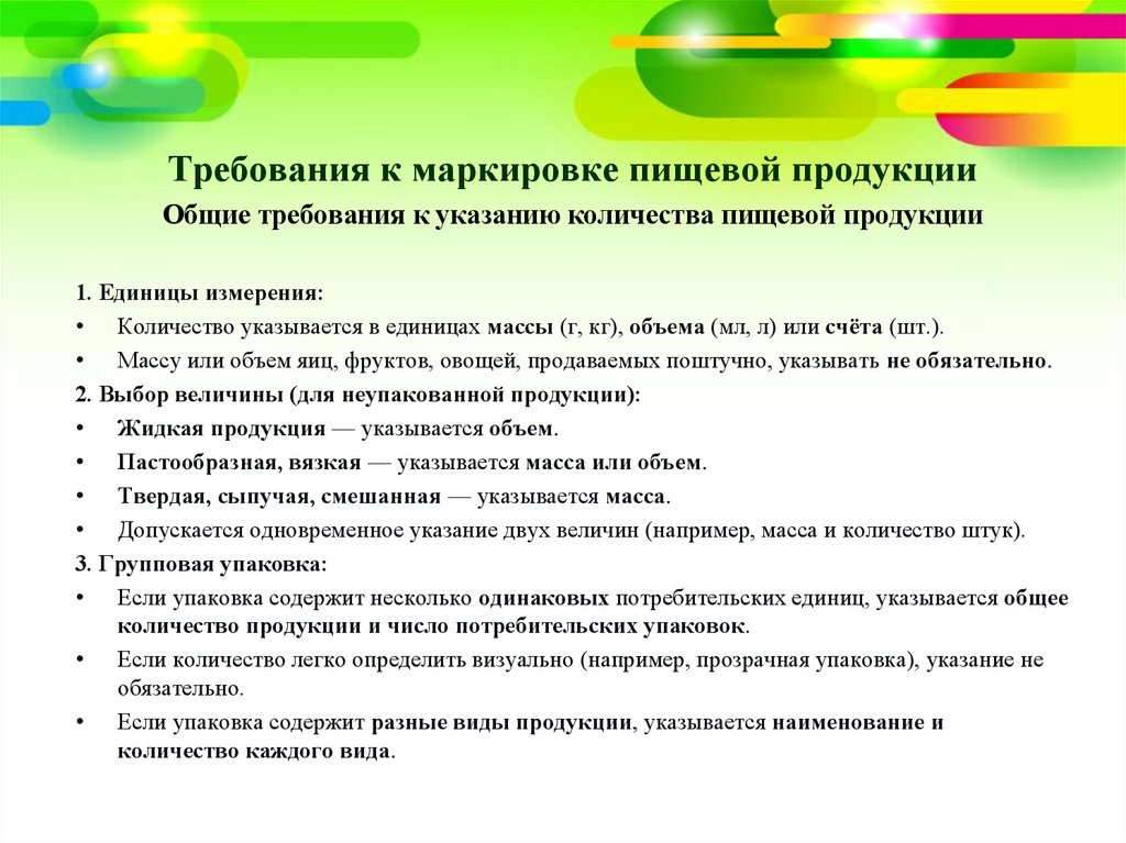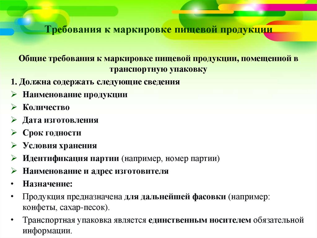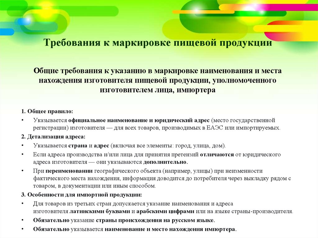 Требования к маркировке пищевой продукцииТребования к способам доведения маркировки