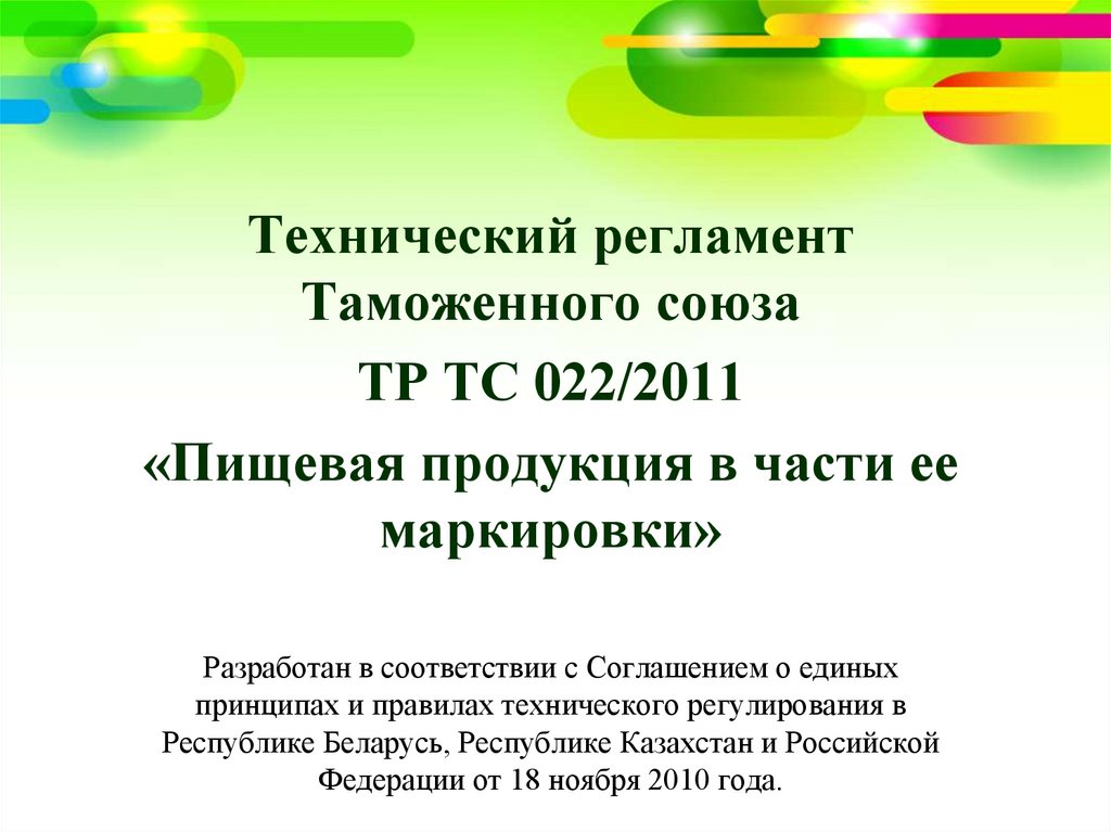 Информация об отличительных признаках, указанная в Приложении 5 ТР ЕАЭС 022/2011, может