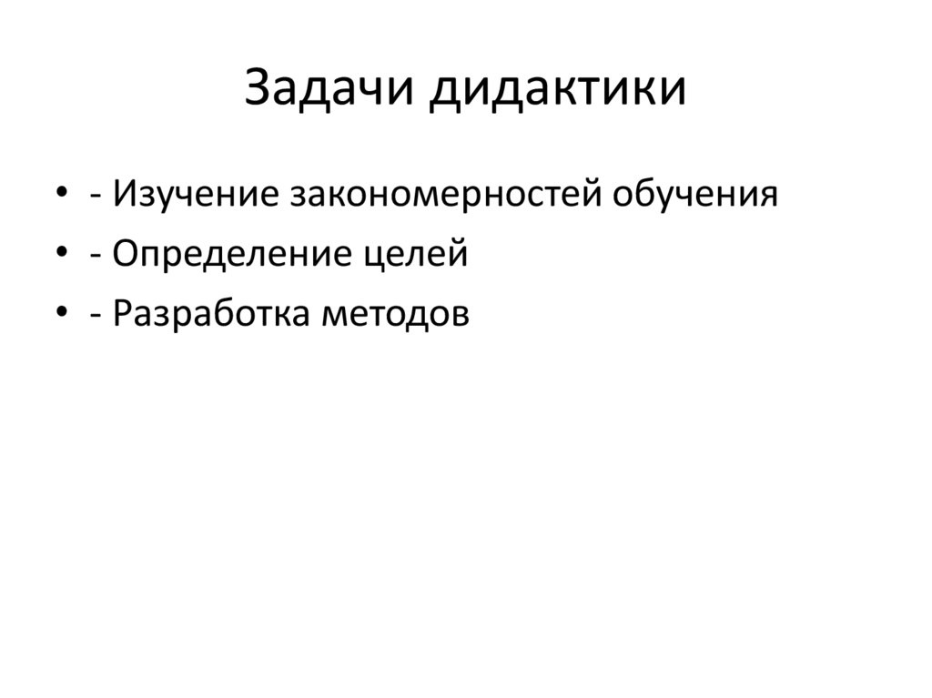 Задачи дидактики• - Изучение закономерностей обучения