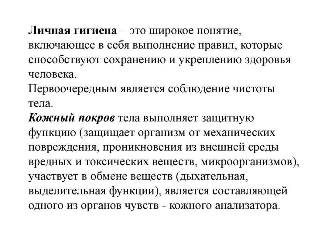 Личная гигиена – это широкое понятие,включающее в себя выполнение правил, которые