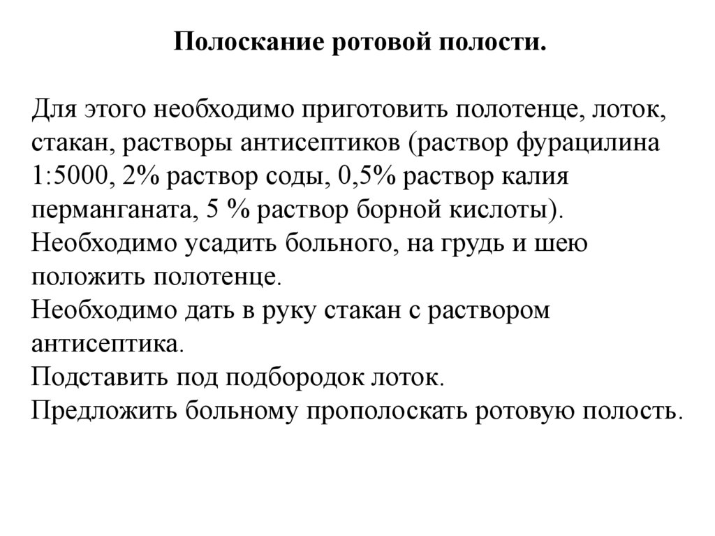 4. Попросить больного ополоснуть рот кипяченой водой.