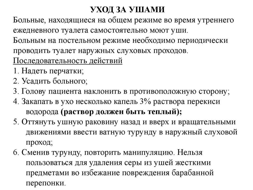 УХОД ЗА УШАМИБольные, находящиеся на общем режиме во время утреннего