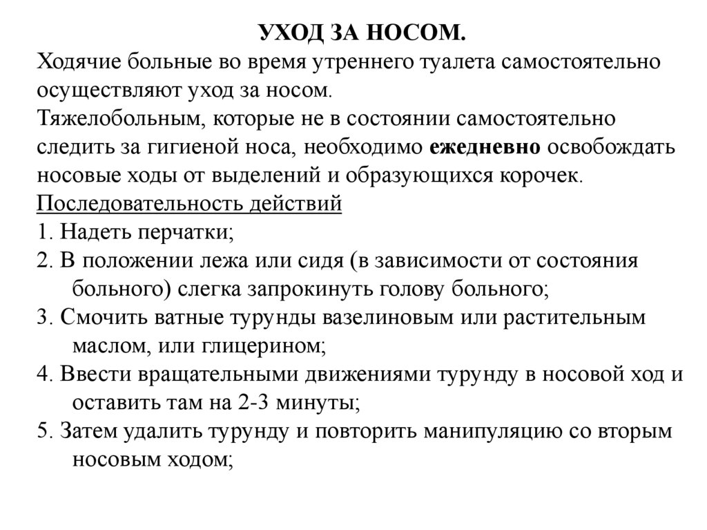 УХОД ЗА НОСОМ.Ходячие больные во время утреннего туалета самостоятельно