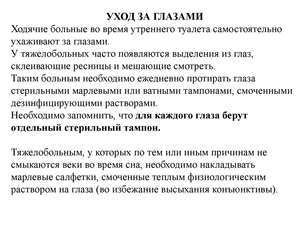 УХОД ЗА ГЛАЗАМИХодячие больные во время утреннего туалета самостоятельно