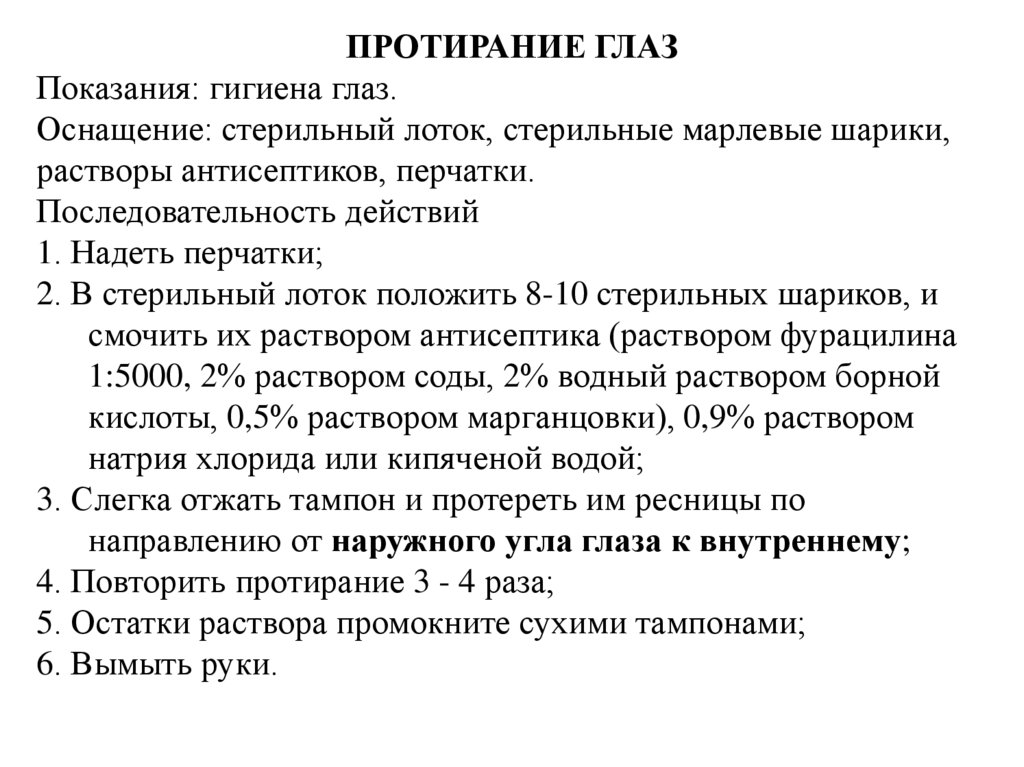ПРОТИРАНИЕ ГЛАЗПоказания: гигиена глаз.