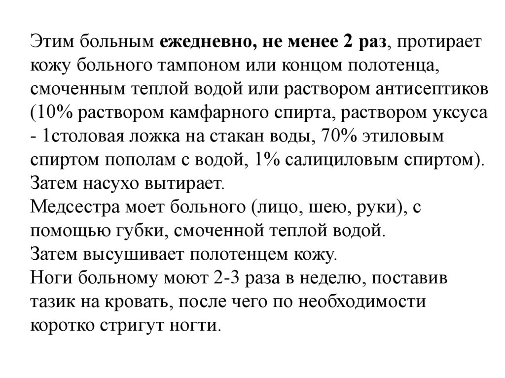 Этим больным ежедневно, не менее 2 раз, протираеткожу больного тампоном или концом полотенца,