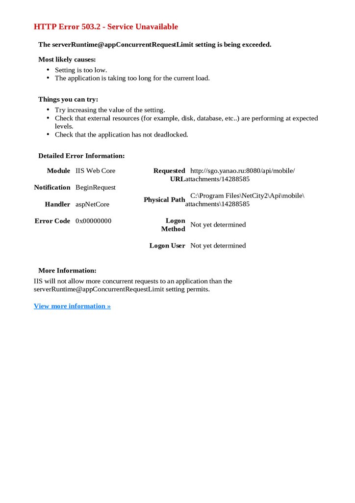 HTTP Error 503.2 - Service UnavailableThe serverRuntime@appConcurrentRequestLimit setting is being exceeded.