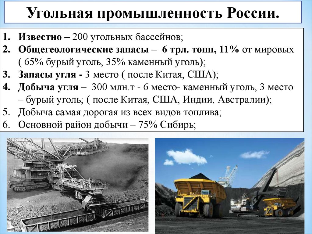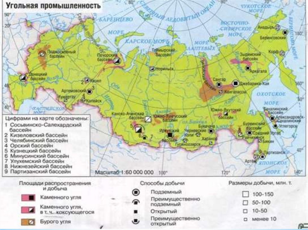 Угольная промышленность России.1. Известно – 200 угольных бассейнов;