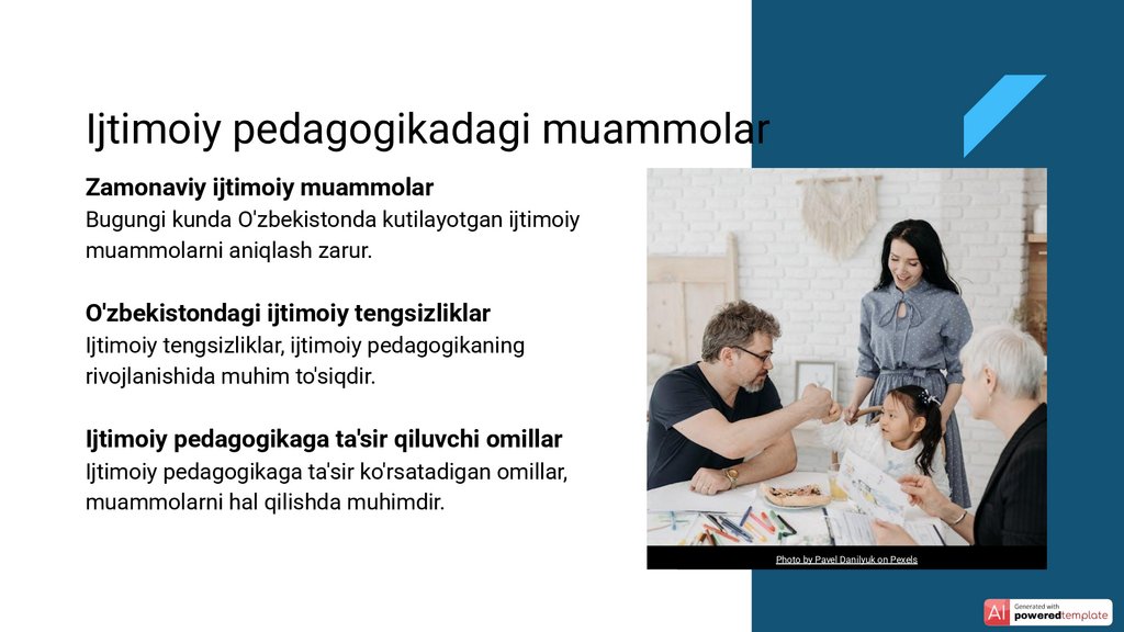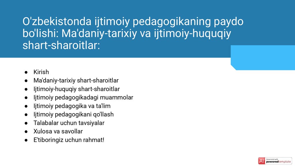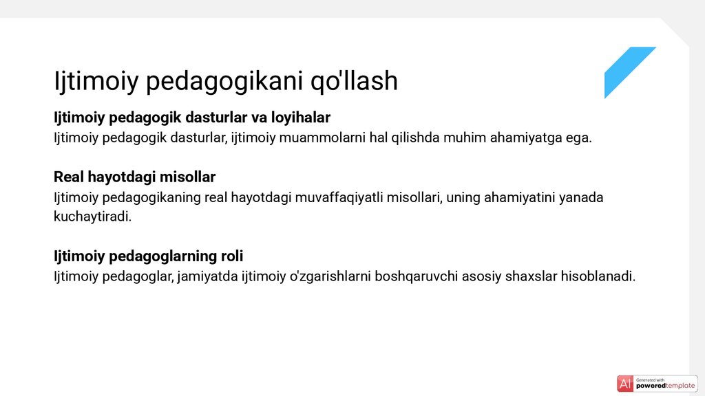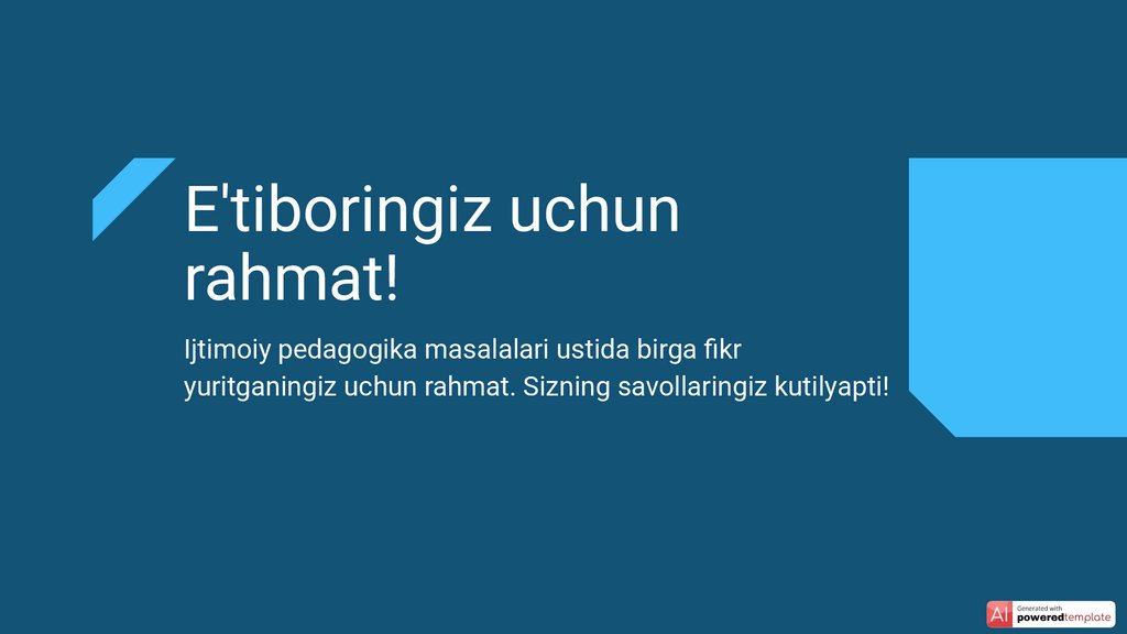 Ijtimoiy pedagogikaning rivoji, umid qilamizki, ijtimoiy masalalarni yaxshilashga olib keladi.