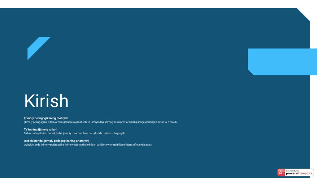 O'zbekistonda ijtimoiy pedagogika, ijtimoiy adolatni ta'minlash va ijtimoiy tengsizliklarni bartaraf etishda zarur.