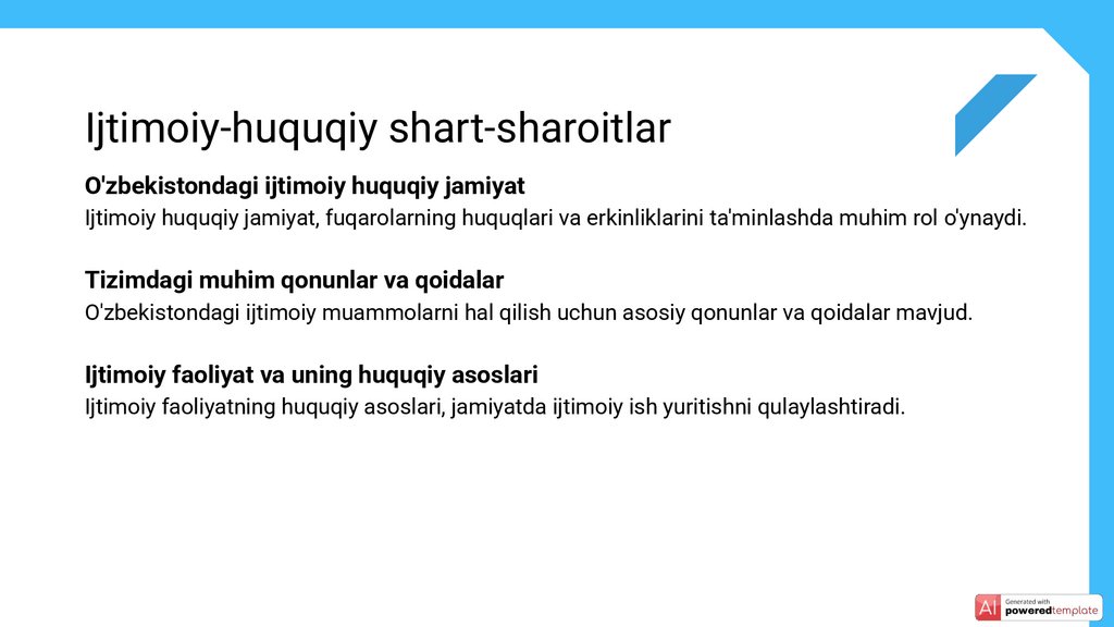 Ijtimoiy-huquqiy shart-sharoitlarO'zbekistondagi ijtimoiy huquqiy jamiyat
