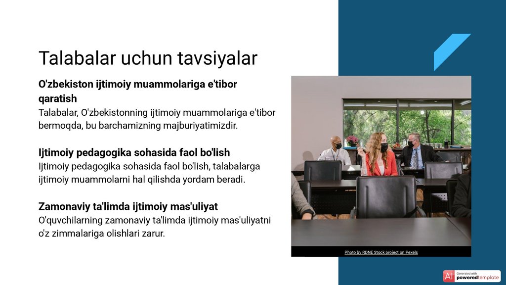 Talabalar uchun tavsiyalarO'zbekiston ijtimoiy muammolariga e'tibor