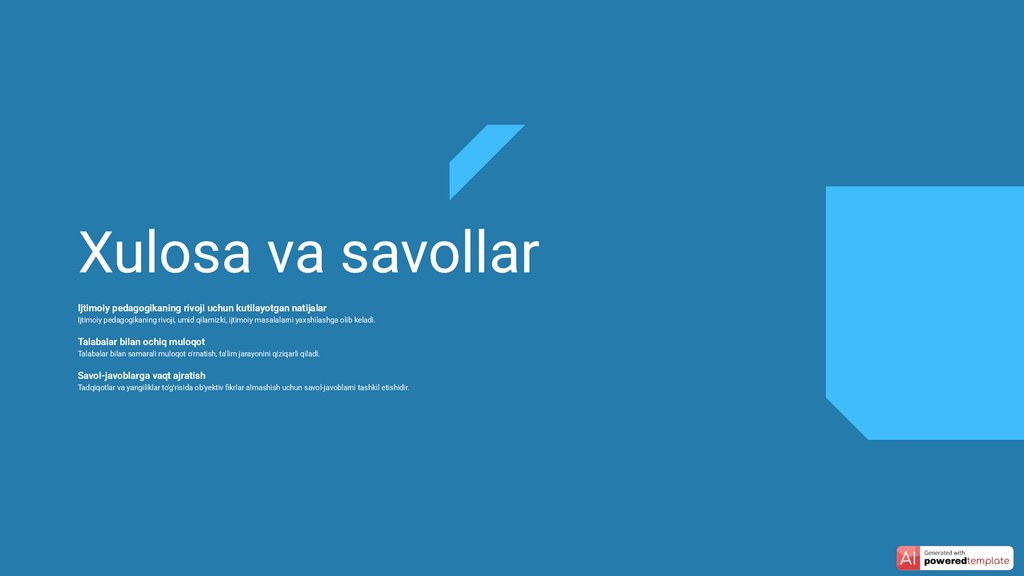 Xulosa va savollarIjtimoiy pedagogikaning rivoji uchun kutilayotgan natijalar