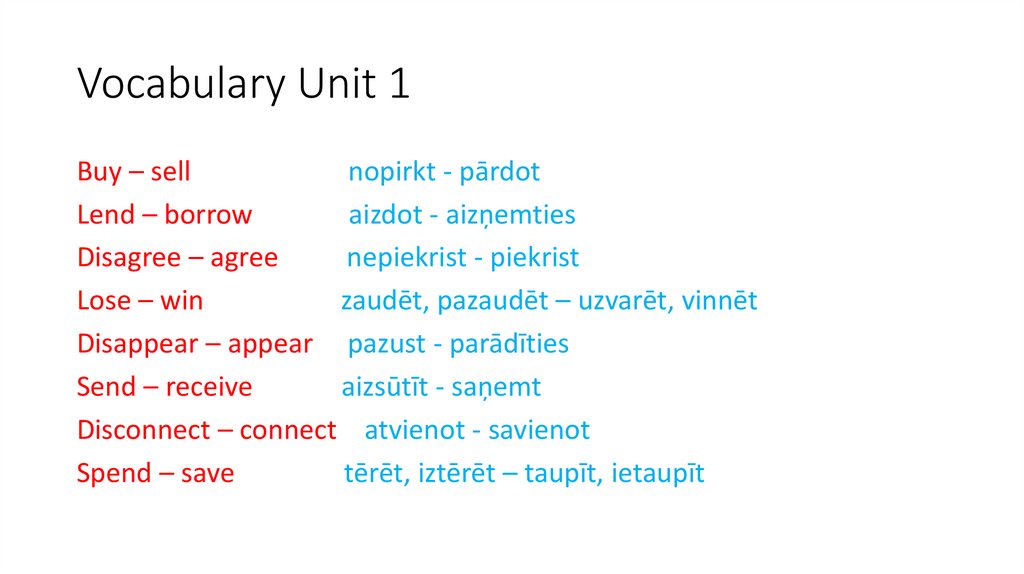 1. Vocabulary Unit 1