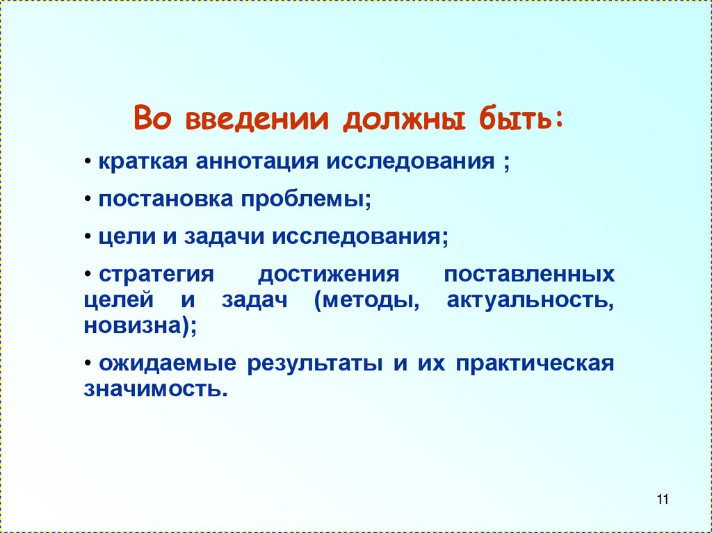 • 1) кратко определяются цель, задачи, актуальность, методы